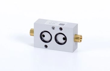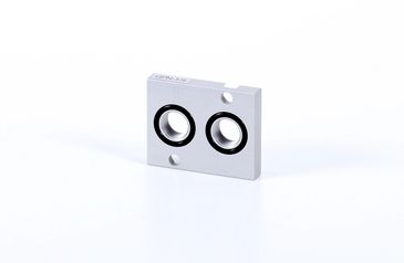 Adapter block to mount a Namur solenoid valve onto a cylinder. Offers a sturdy installation. NPT also available.